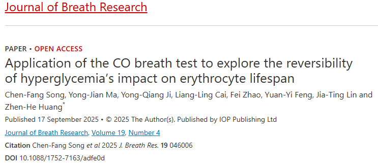 2025-11-04- 2025年9月,深圳大学附属南山医院、深圳大学呼气研究所和广东省呼气检测工程技术研究中心共同在《journal of breath research》发表了题为“Application of the CO breath test to explore the reversibility of hyperglycemia’s impact on erythrocyte lifespan”的研究论文。研究通过使用深圳市先亚生物科技有限公司的RBCS-03型红细胞寿命测定呼气试验仪对医院内2型糖尿病患者红细胞寿命进行分析。...[详细]